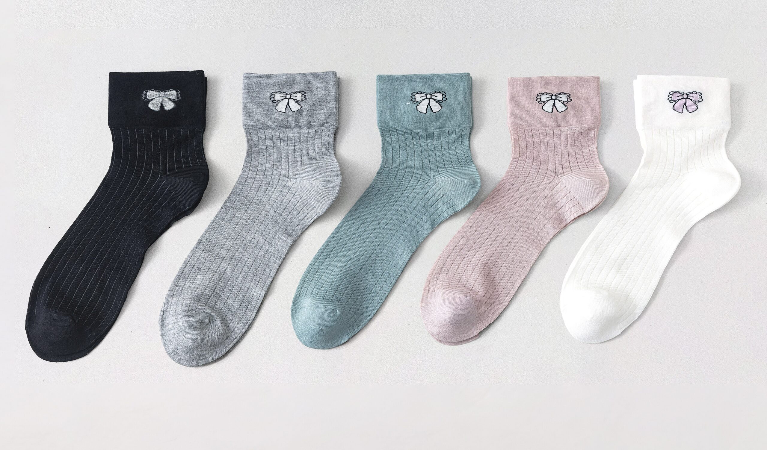- U paketu dobivate 2x crne, 1x ružičaste, 1x sive, 1x mint zelene i 1x bijele. Paketi su pakirani miješano, ako želite primiti sve boje, naručite 2 paketa = 12 pari čarapa