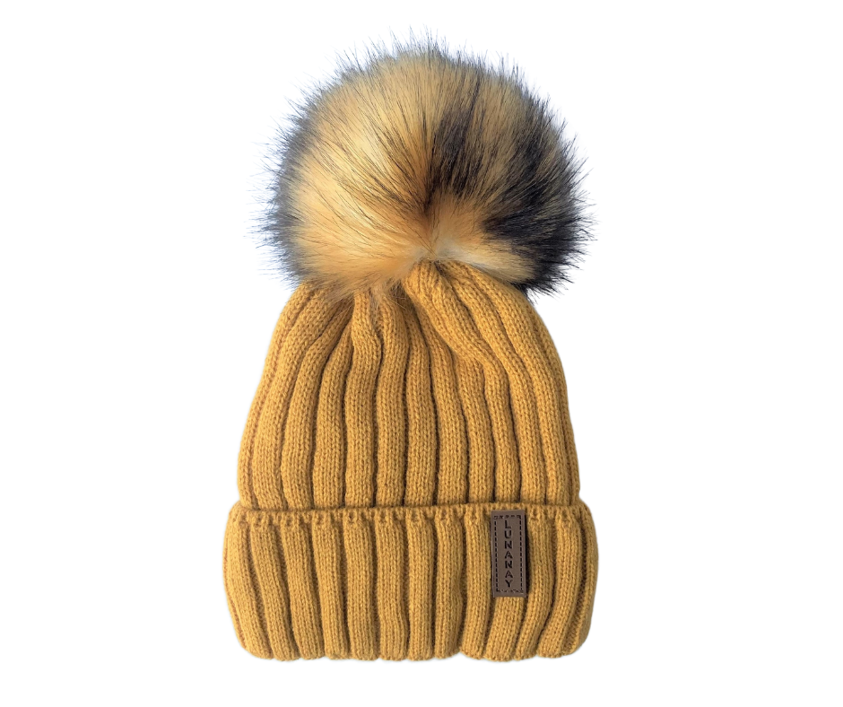 Zimska pletena kapa Lunanay 7015, senf žuta boja